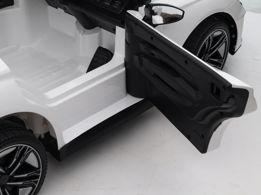 Deze sportieve elektrische kinderauto is op heel veel details mooi nagemaakt van de echte Audi RS e-tron GT. De Audi kinder voertuig is voorzien van 2x 12 volt aandrijvingen op de achterwielen en heeft 3 verstelbare snelheden tussen de 3 en 5 km per uur. Verder is deze accu auto uitgevoerd met veel opties als: 2 echte deuren, volledig rubberen banden i.p.v. plastic banden, kunstleder zitje, ledverlichting, toeter en muziek en de mogelijkheid om eigen muziek af te spelen via een USB-, mini-SD of MP3-ingang. Met de ‘soft start’ functie zal de auto de snelheid rustig opbouwen. Uw kind voelt dus geen schokje bij het optrekken.