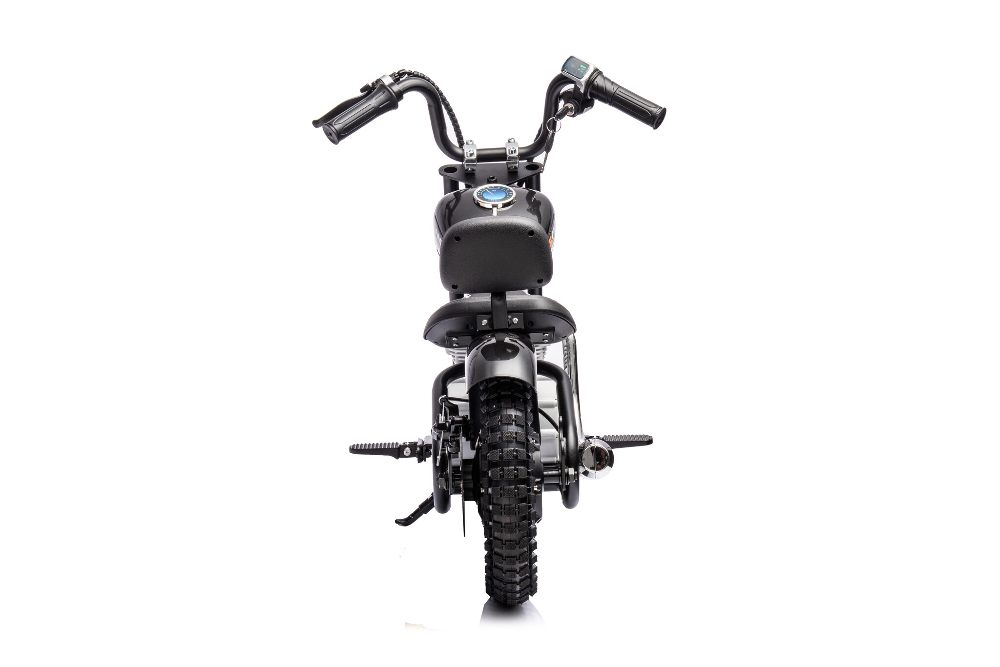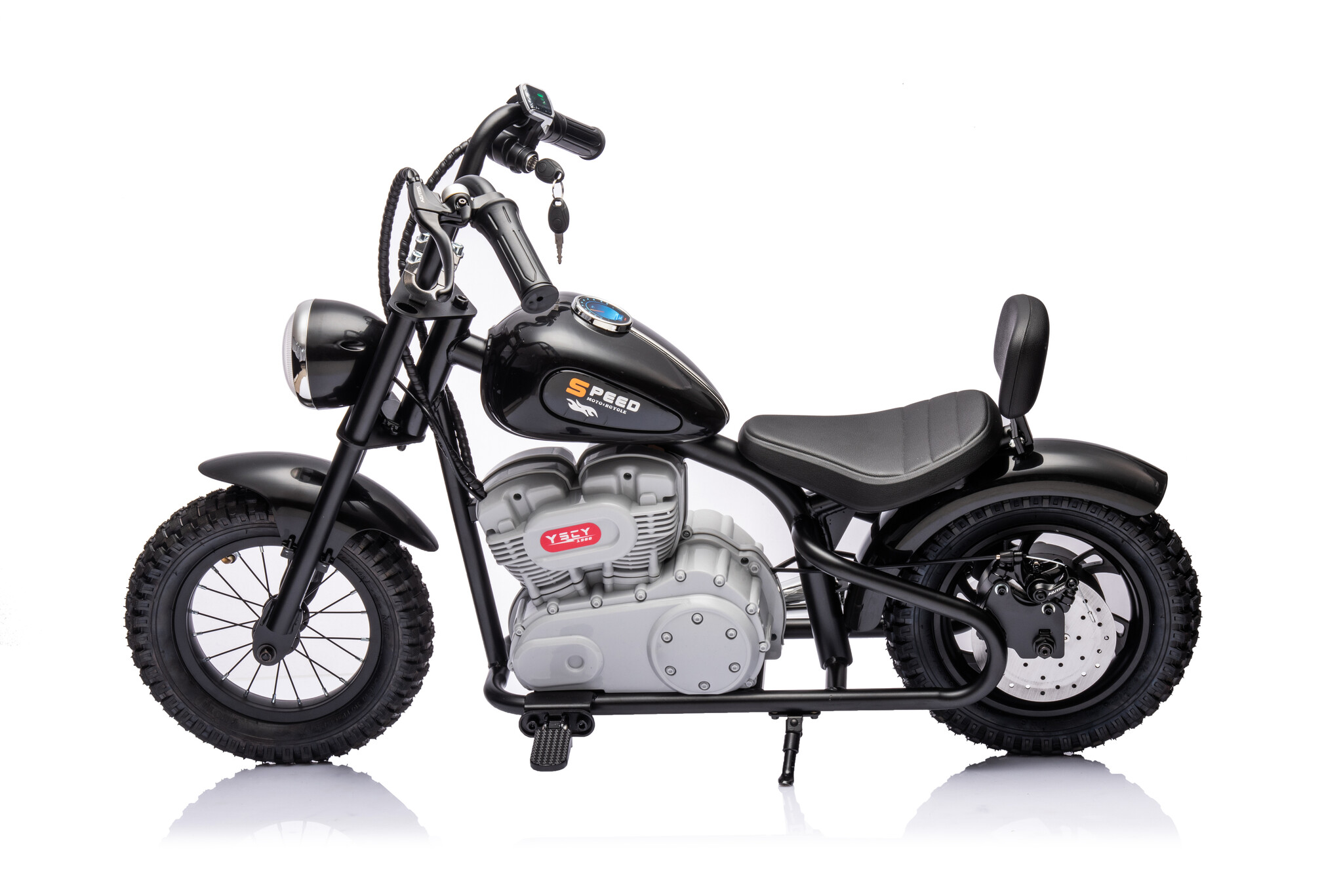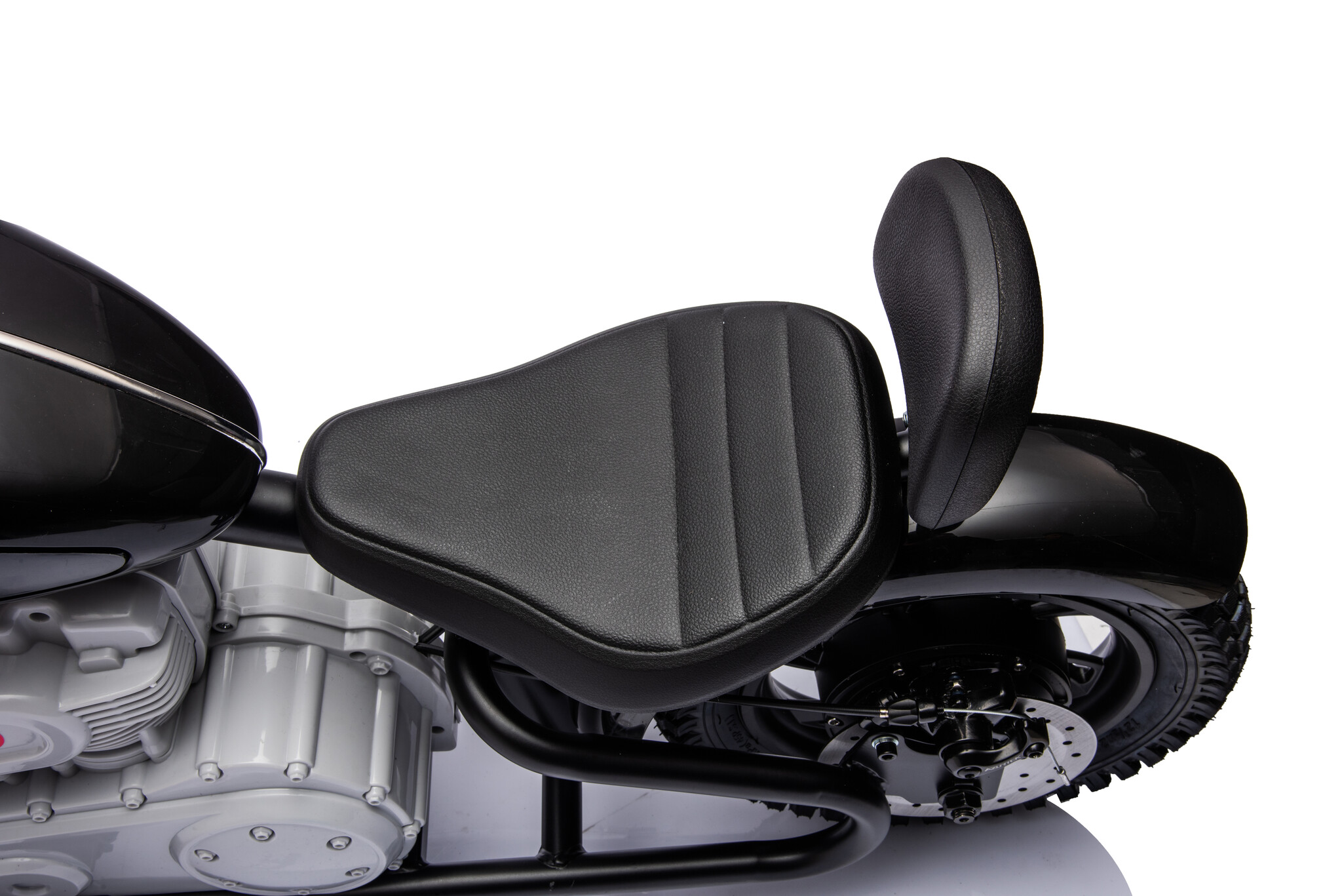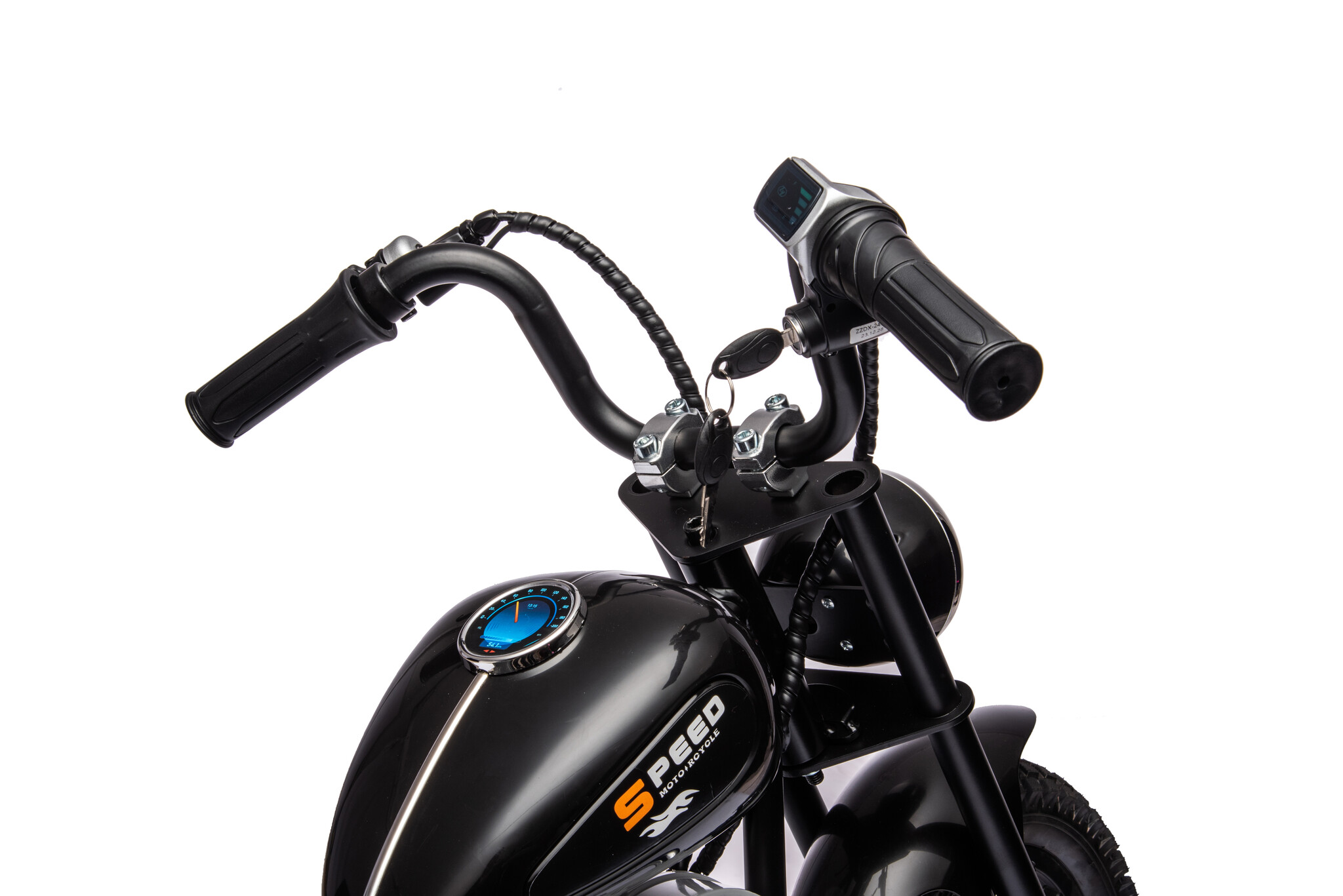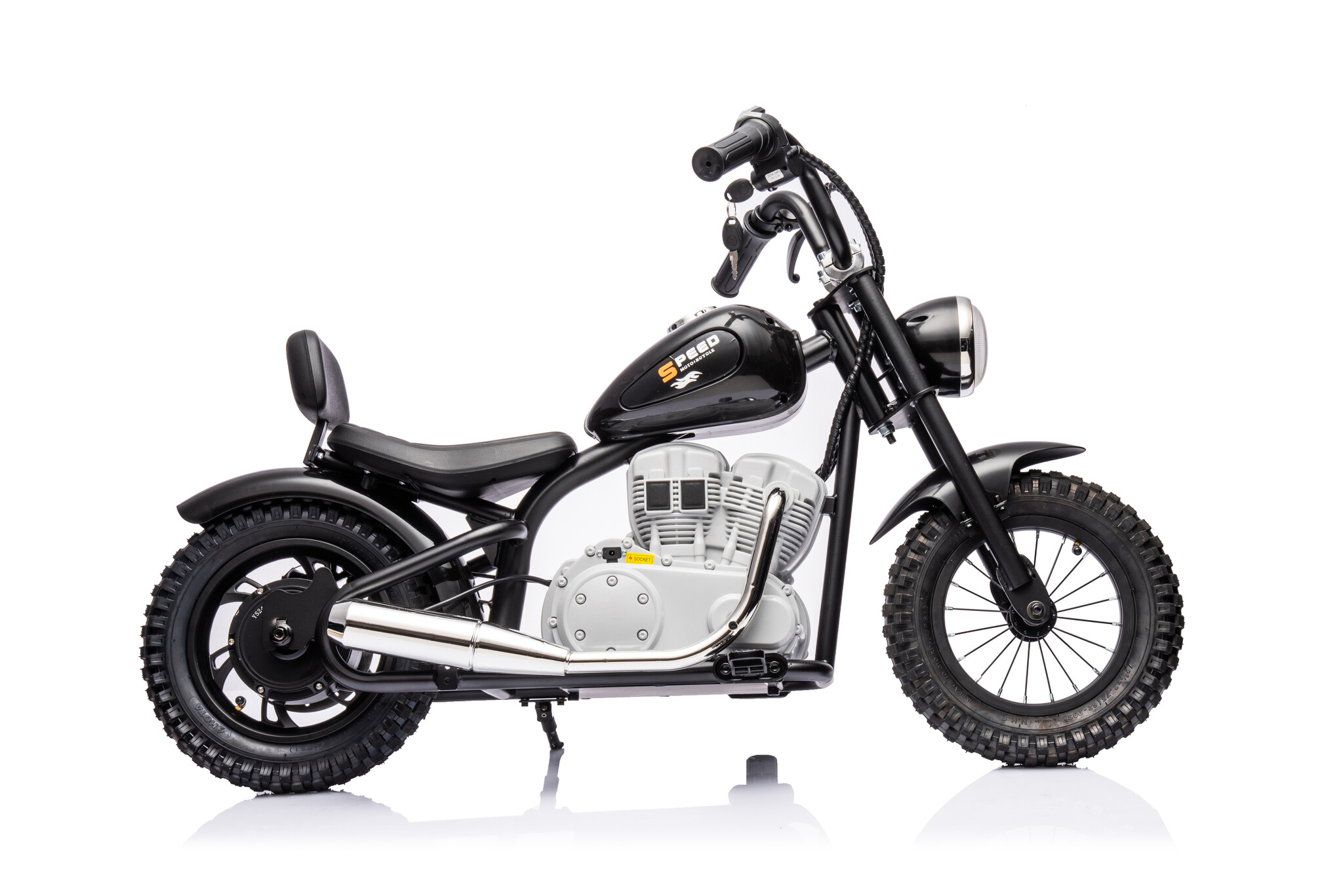 Deze elektrische chopper is uitgerust met een 350W brushless motor, waardoor hij snel, krachtig en betrouwbaar is. De motor behaalt snelheden tot 25 km/h, wat hem extra spannend maakt voor jonge motorrijders.