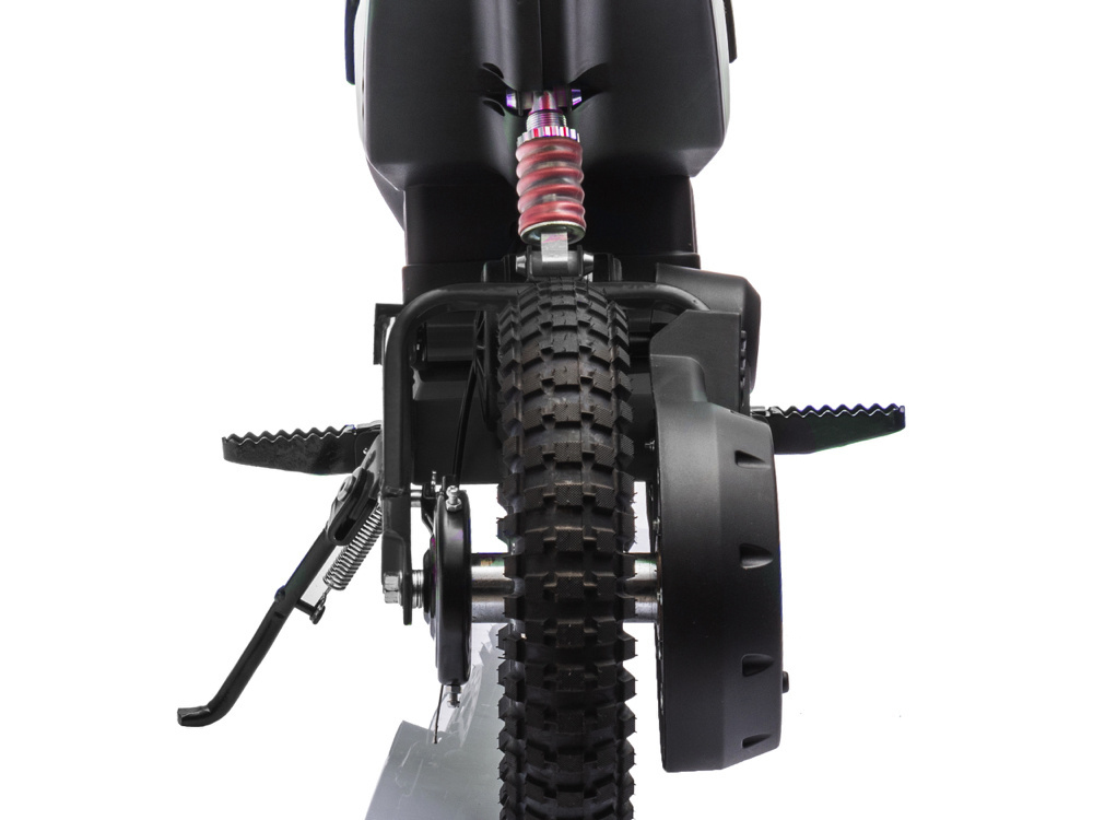 Veiligheid staat voorop met de kettingaandrijving op het achterwiel, beschermd door een kettingkast. Hierdoor kunnen kinderen met vertrouwen rijden, wetende dat ze goed beschermd zijn tijdens hun avonturen op de crossmotor.