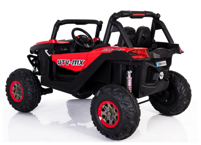 Deze coole tweepersoons beachbuggy heeft een echte 4×4 drive en lederen bekleding. Deze witte buggy heeft niet alleen de looks, maar ook de nieuwste technische kenmerken. Omdat deze quad niet één maar twee 12V7ah batterijen bevat, heeft hij echte spieren!